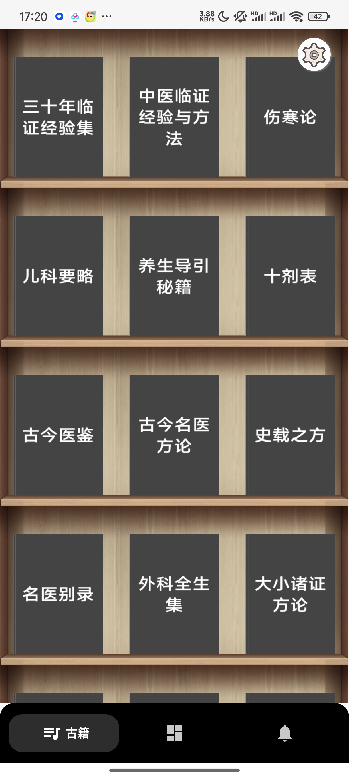 内置《伤寒论》《古今名医方论》《外科全生集》等数十部中医古籍,支持在线查阅,覆盖内/外/妇/儿等科内容。