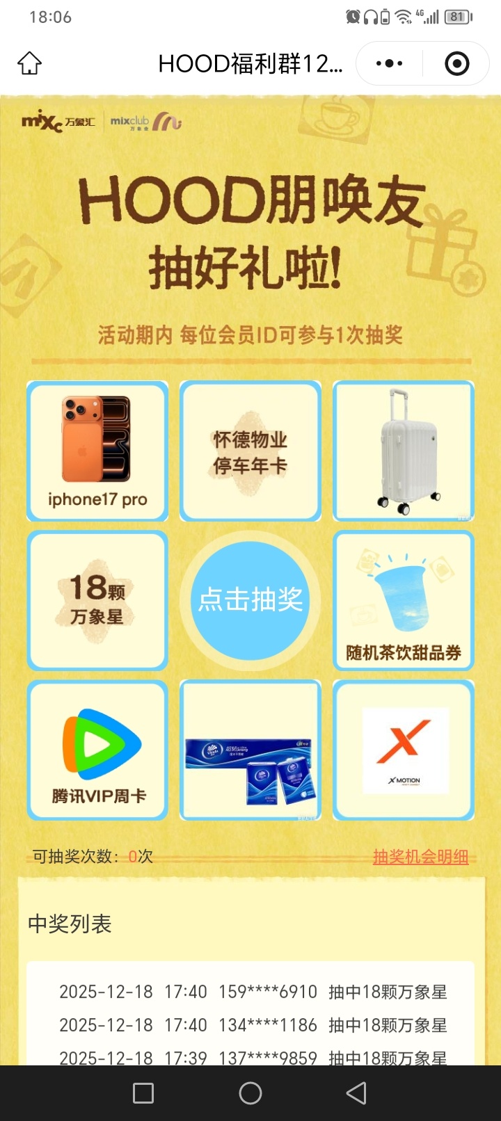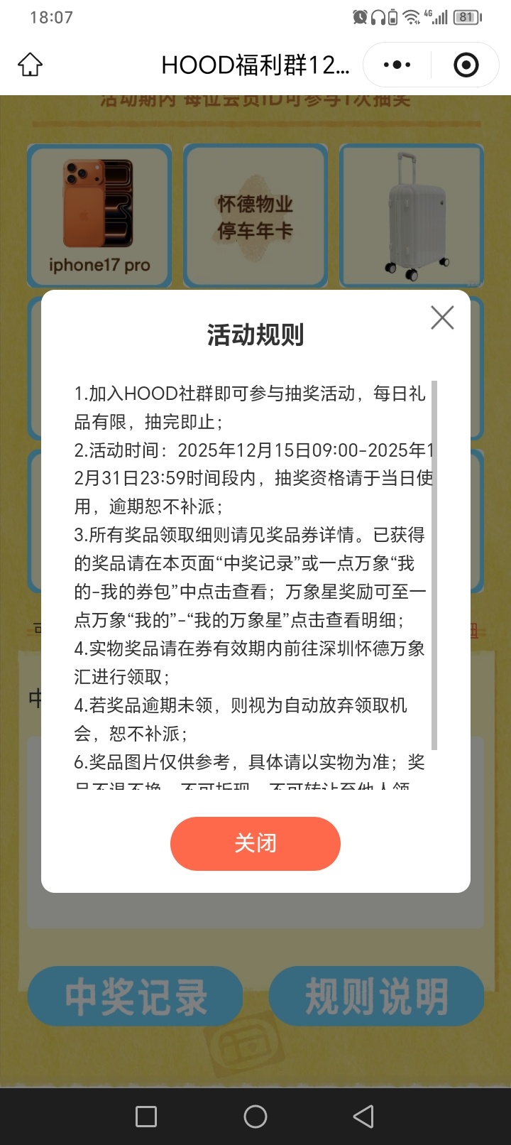 【活动规则】一次抽奖机会