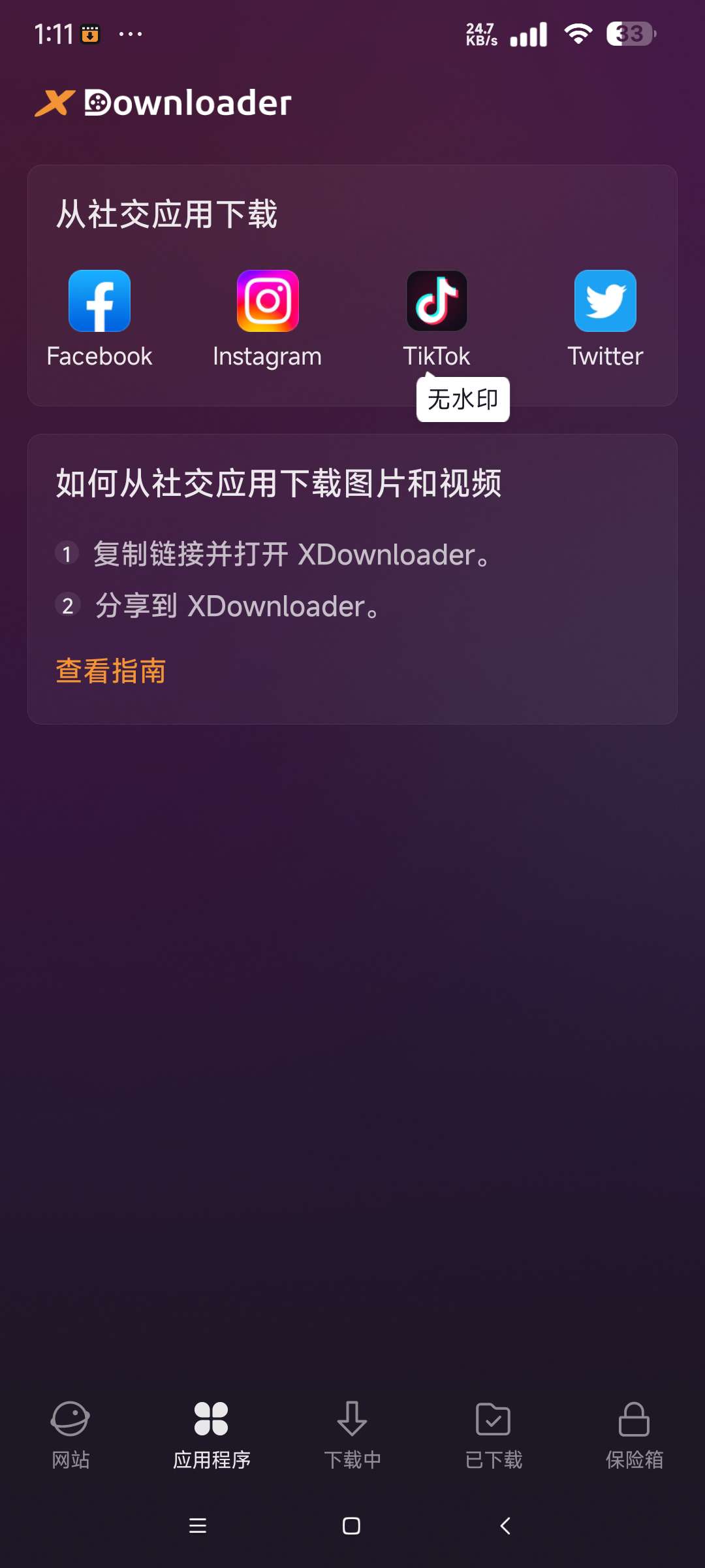 【应用简介】X 下载器是一款功能强大的下载工具,专为安卓用户设计,旨在帮助用户轻松从各大社交平台如Facebook、Instagram、TikTok等下载视频和图片。该应用内置浏览器能够自动检测网页中的视频和图片,并提供一键下载功能。