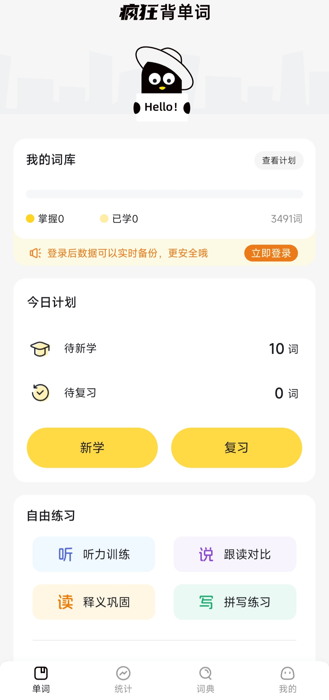 【应用简介】疯狂背单词,你的专属英语学习神器!基于艾宾浩斯遗忘曲线科学规划,每日十分钟,一年掌握海量词汇。