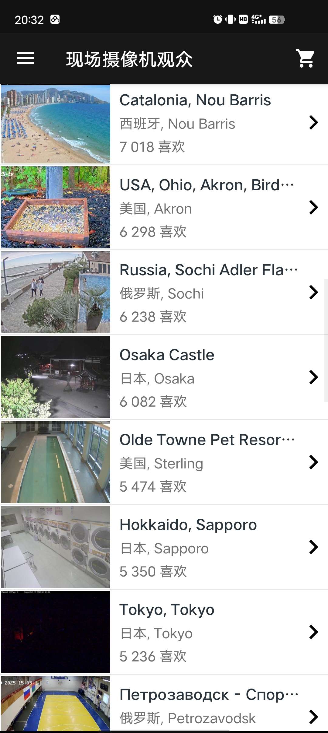 现场摄像机观众是一款让你可以浏览全世界各地摄像头的应用程序。内置了海量的摄像头资源,用户能够观看美国、俄罗斯、澳大利亚等众多国家和地区的地方景色。