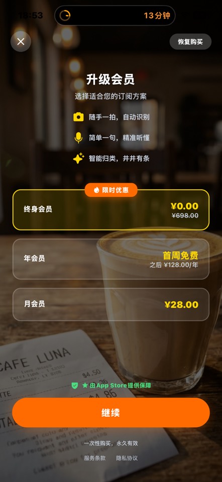 拍照识别:票据秒录入 购物小票、餐厅账单随手一拍,OCR智能识别消费明细,再也不用对着小票一个个输数字。